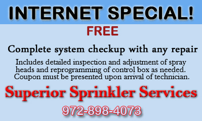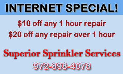 At Superior Sprinkler Services, it is our promise to remain competitive, yet affordably priced. We firmly believe that beautiful healthy lawns should not cost you a fortune. In doing so, we are providing you with a variety of money-saving coupons so that can enjoy your lawn and landscaping without costing you an arm and a leg. Please be aware that though we encourage you to take advantage of our coupons, we also ask that no two offers be combined and that these promotions cannot be combined with any other offer.